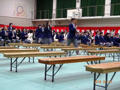 吹奏楽の音楽が始まりました。新入生の入場です。