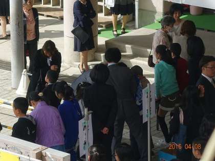 校長室から,下を見ると,続々と新1年生と保護者が校門をくぐってこられています。