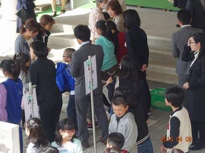 入学受付を済ませると,新6年生が1年生を教室まで連れて行ってくれます。クルクルとよく動いてくれるので,安心して任せられます。6年生大忙しです。ありがとう。