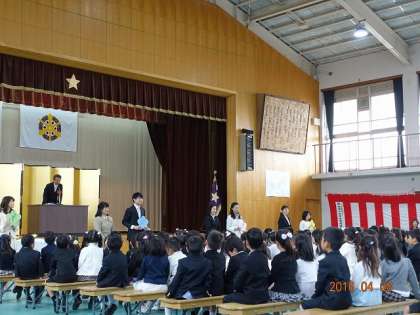 本年度は135人の入学で,4クラス。それぞれのクラスに,「学びの先生」がついて,学校生活をサポートします。
