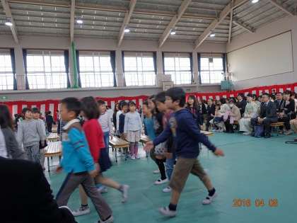 続いては,2年生たちのお迎えの言葉です。前に出るときの,隊列の組み方が最高です。長い挨拶の言葉も,順番を間違えずに,しっかりと言えました。