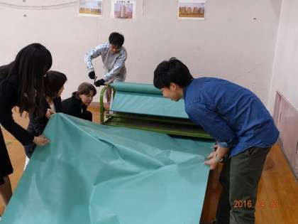 床に敷いた土足用のシートの巻取りが意外と大変。