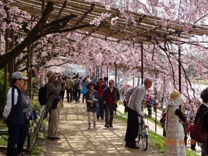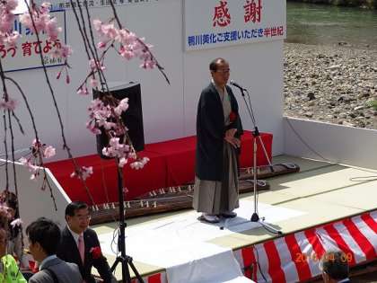 鴨川を歩いていると,門川市長がご挨拶の舞台に立たれていました。