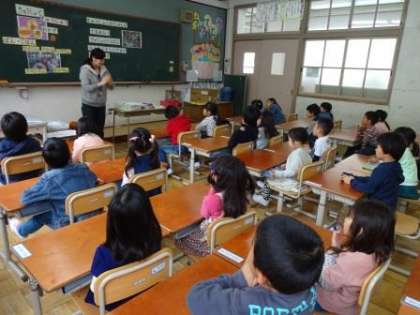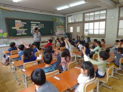 栄養教諭の桃井先生から,給食についてのお話を聞きました。