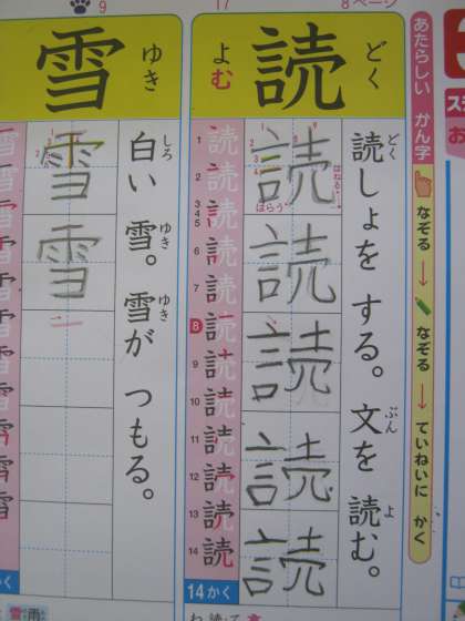 これがとっても難しくて…。「画数が多い〜!」「むずかしい〜!」の声が多数上がりました。「でもこんな難しい字が書けたら,さすが2年生って感じだね!」と言うとちょっと得意そうにしていました。素直でかわいらしい2年生です。