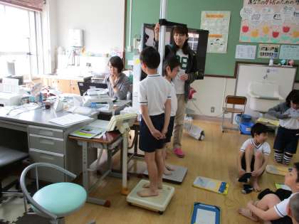 4年生になって初めての身体計測がありました。計測の前に,保健室の使い方について,保健室の先生から説明がありました。さすが4年生!しっかり話を聞けています。