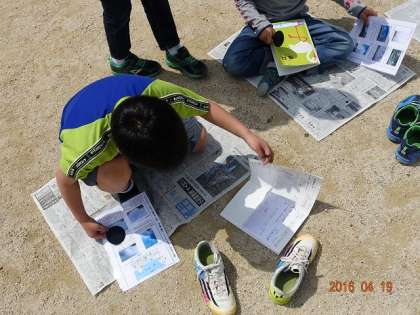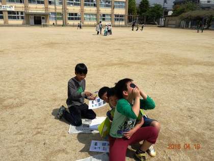 視力測定のような光景ですが,理科の勉強の一コマでした。
