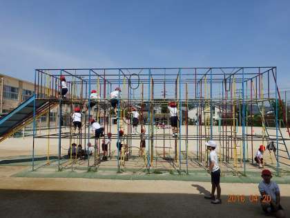KI先生のクラスは,総合遊具にのぼっています。