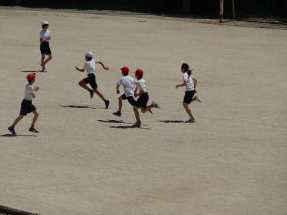 青空のもと,元気な声が職員室まで届いてきました。