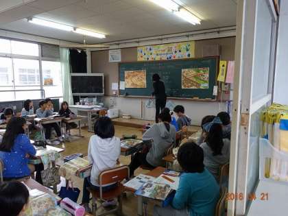 6年生は,社会科の勉強。縄文時代と弥生時代の暮らしの様子を比べて,学習問題を作るようです。
