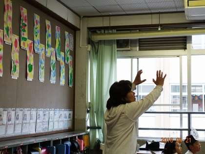 しばらく様子をみていたのですが,明日の参観日で披露する,音読の練習をしているようです。ここで紹介すると,明日の楽しみがなくなるので,「こんな風にしたほうが,いいんじゃない」と身振り手振りで見本を見せているY先生の様子でも,ご覧ください。こんな身振り手振りを,明日は子どもたちがする筈です。