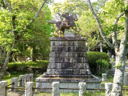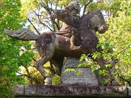 少し前に,地域の方が「三宅八幡の参道にある『楠木正成像』は,もともと大宮小学校にあったものらしいです。なぜ,移設されたのかは,分からないのですが・・・」とおっしゃっていたことを思い出し,連休中に,見に行きました。