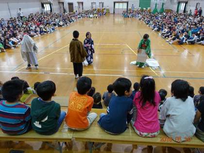 順番に「あいさつ」「そうじ」のプレートを挙げます。