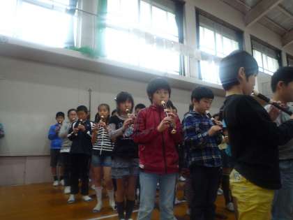 5年生は1年生の入退場の時にリコーダーでミッキーマウスマーチを演奏しました。