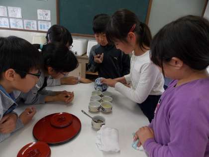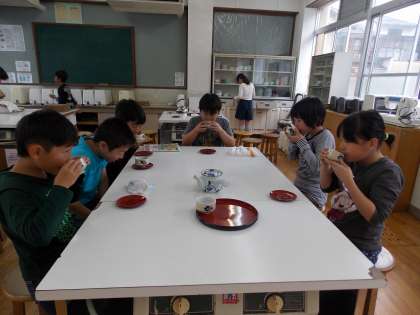 家庭科の学習で、お茶を入れました。