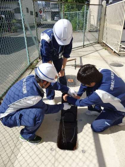 大宮校には,災害時のトイレに対応できるような設備があります。水道が復旧していなくても衛生環境を保てるように考えたものだそうです。