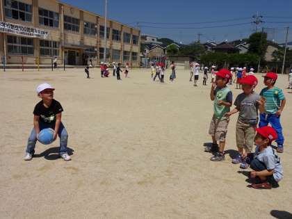 昼休み,運動場を使える時間にみんな遊びでドッジボールをしています!なかなかボールをなげるのがうまくなってきました。