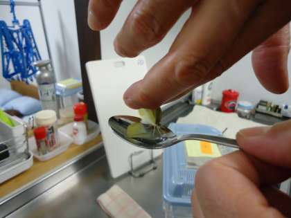 休みの間にかえったので、先生が蜜をあげて育てていました。