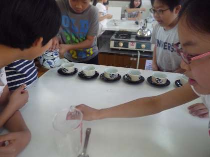 家庭科の実習で,お茶を入れました。