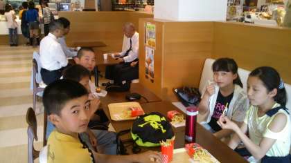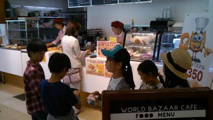 お昼ごはんは,ミールクーポンを使って「食べ歩き」。
