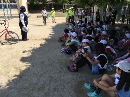 北署の警察職員の方から,自転車の正しい乗り方や交通ルールを丁寧に教えていただきました。正しく安全に自転車に乗るために,真剣に話を聞く4年生でした。