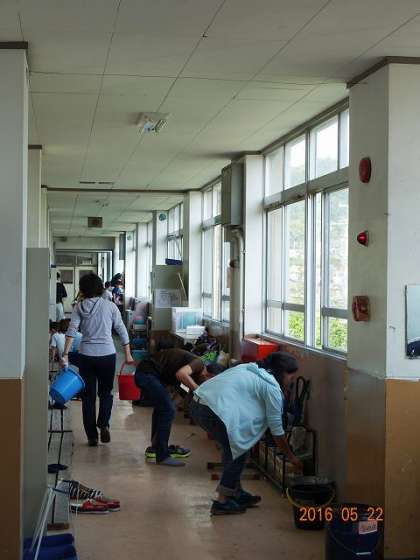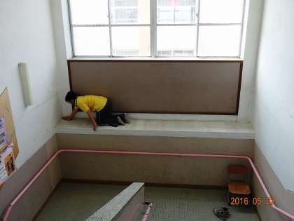 階段のたたきの所なんて,まず子どもたちには手が届かないので,数年間は放置状態だったのではないかと思います。四つん這いになって,ゴシゴシ。お疲れ様です。