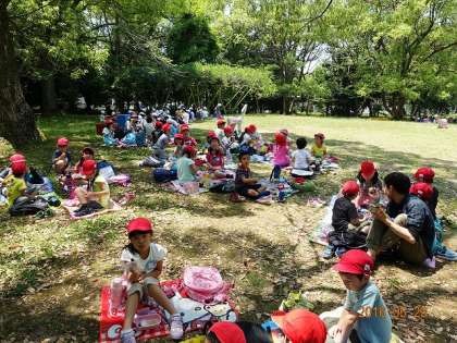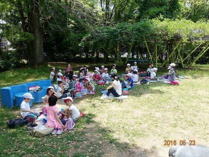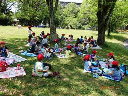 交通公園では,みんな昼食中でした。上手に日陰に集まっています。