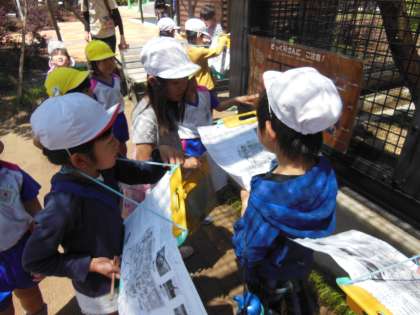 京都市動物園では,グループごとにクイズラリーをしました。グループで協力して答えを探し出すことができました。