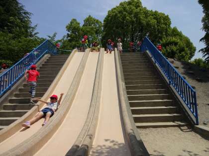 学校にはないおおきなすべり台,友だちとすべると楽しいですね。