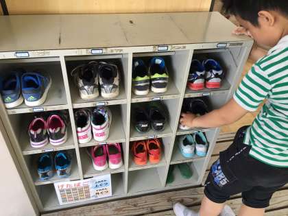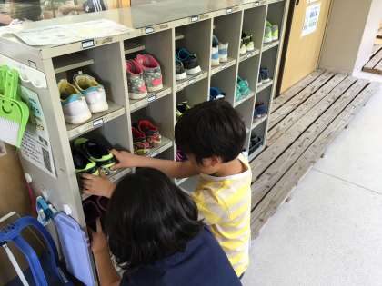 朝に校長先生からも話があったので,みんなで下駄箱の靴をそろえてみました。