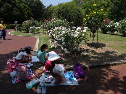 学校を出て,屋外で絵の具を使うとチューブ式のものは乾燥しやすいし,いい天気だと大変だなと思いました。