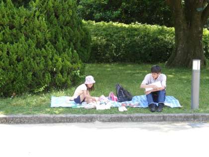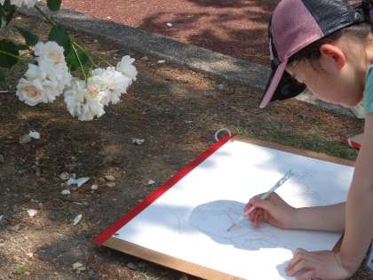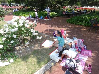 もくもくと,描き進めていきます。見ごろのバラを見に来られた一般の方からも,お褒めのことばをたくさんいただいていました。