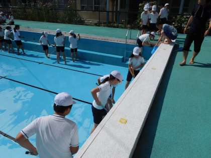 本日,5・6時間目を使って,6年生がプール清掃を行いました。もうすぐプールの季節です。自分たちがきれいにしたプールに早く入りたいですね!