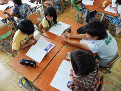 何かの機会に,保護者の皆様にも読んでいただきたいお話です。一生懸命,子どもたちは話し合いをしていました。