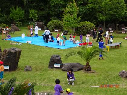 高学年が実験をしている時間は,低学年は科学センターの中でいろいろな体験活動をしていました。外でも面白そうな遊びが。