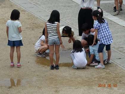 水たまりさえも,遊びの対象。泥水に手を突っ込んで何かやってるぞ。