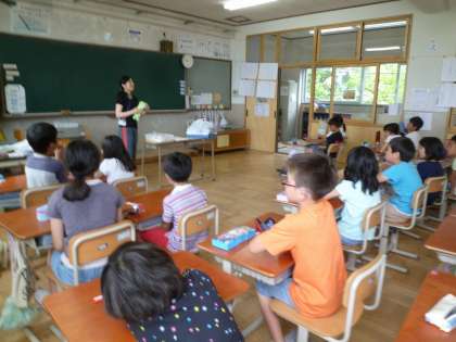 栄養教諭の桃井先生に,体内での水分の働きや水分補給の大切さについて教えていただきました。これから,暑い季節になります。水分補給をしっかりして,過ごしてほしいと思います。