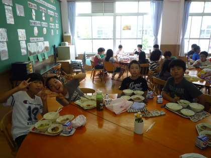 今日はランチルームで給食を食べました。いつもとは違う環境で食べる給食はいつもよりおいしいみたいでしたよ。