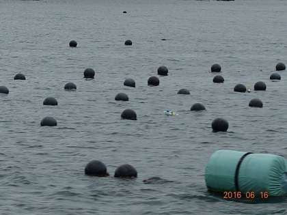 丸いぶいや筏は、真珠の養殖用だそうです。