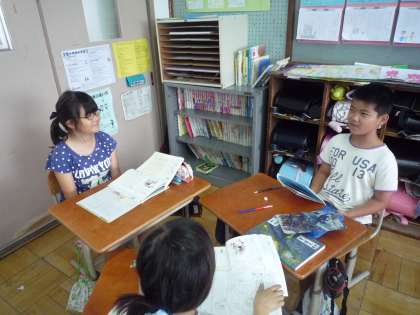 国語の「聞いて 聞いて 聞いてみよう」という単元でクラスの友達にインタビューをしました。普段の言葉づかいとは違い,丁寧な言葉で受け答えをしました。真剣に,でも楽しくインタビューをしていました。