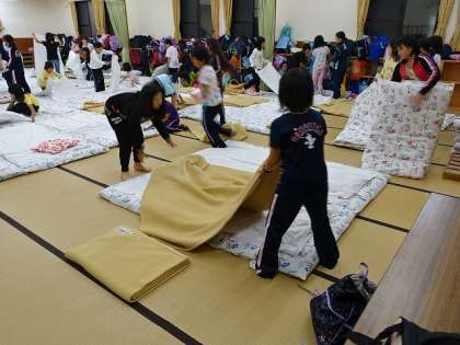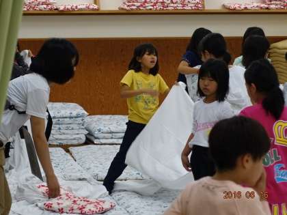 90畳の女子たち、就寝準備に大忙し。