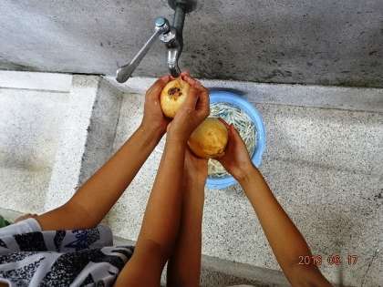 玉ねぎ、長ネギ、豆腐、もやし、白滝、お肉が入ります。