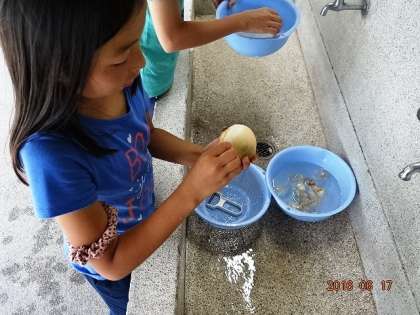 玉ねぎの皮をむく。どこまでむいたらいいのか、分からない。
