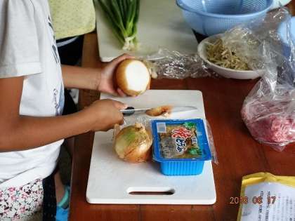 玉ねぎのへたをとってから、皮をむこうという作戦。これは、good。