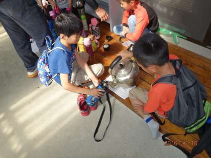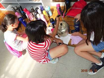 食事係も、水筒入れが上手になりました。