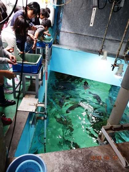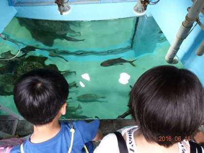 バックヤードに入れてもらって,魚のえさやりです。