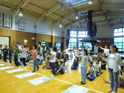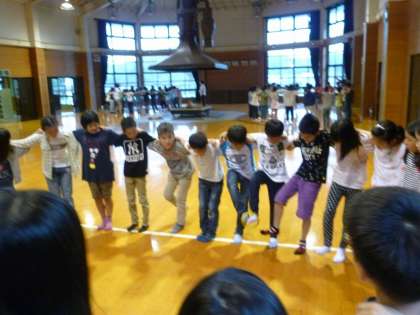 雨で浦山ラリーが中止になったので,プレイホールで,レクリエーションをしました。猛獣狩りをしたり,クラス対抗で輪っかリレーをしたりしました。みんな汗だくになって遊びました。