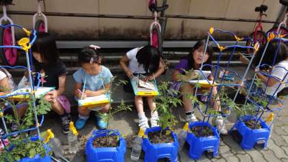 「いっぱいミニトマトができるといいなぁ〜」と子どもたちも嬉しそうです。