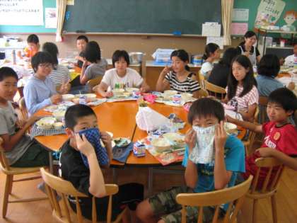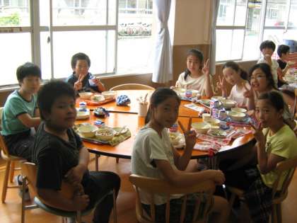 月曜日には,ランチルームにて給食を食べました。いつもとは違う場所でみんな仲良く給食を食べました。