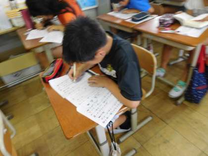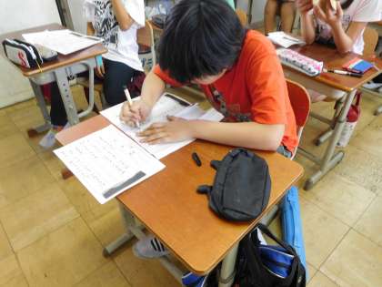 フェルトペンで,漢字や仮名のバランス,文字の形を整えて書いています。